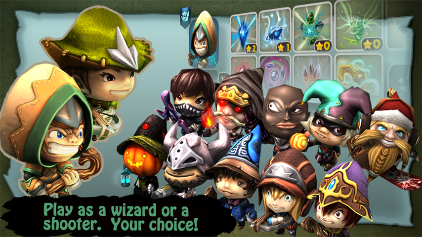 - A variety of characters for the selection. Pick the wizard or shooter as you please.